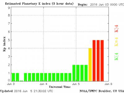 Под действием космических факторов, Большого креста планет - 5 июня 2016 - в магнитосфере Земли началась магнитная буря.