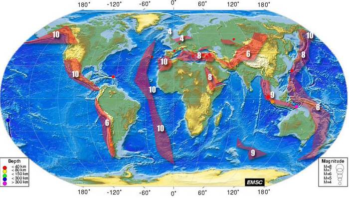 Сейсмически активные регионы Земного шара