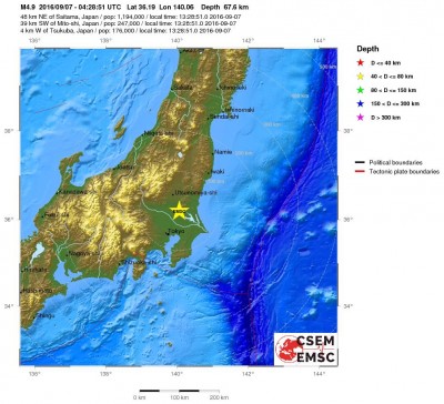 У Токио и у острова Тайвань 7 сентября 2016 произошли землетрясения магнитудой соответственно 4.9 и 5.1. На глубине 50 - 68 км.
