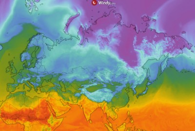 Карта - прогноз температур - 22 марта 2021. www.windy.com