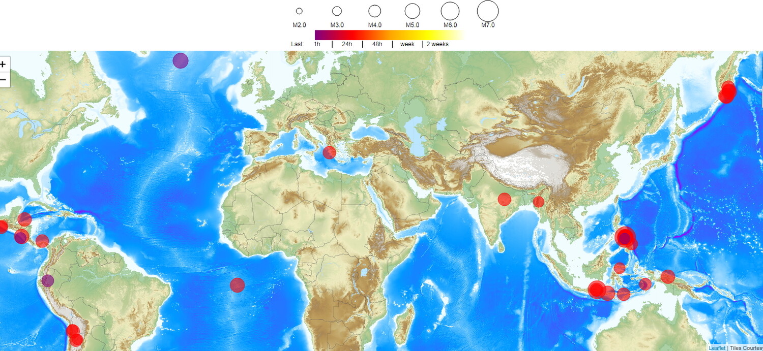 Карта сейсмоактивности 1 октября 2025. ESMC