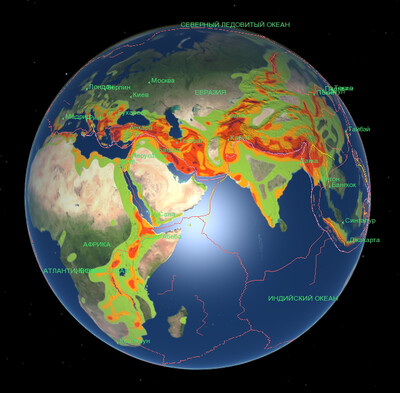 Центральная Азия (Тянь-Шань, Памир) — зоны сложного разлома.