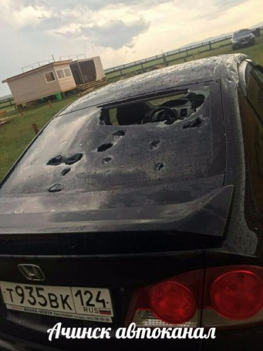 В районе озера Белё (Ширинский район, Хакасия) только что прошел град такой силы, что не выдержали даже стекла автомобилей, град оставил следы и на кузовах машин. Наверняка урон такая стихия нанесла и садоводам.