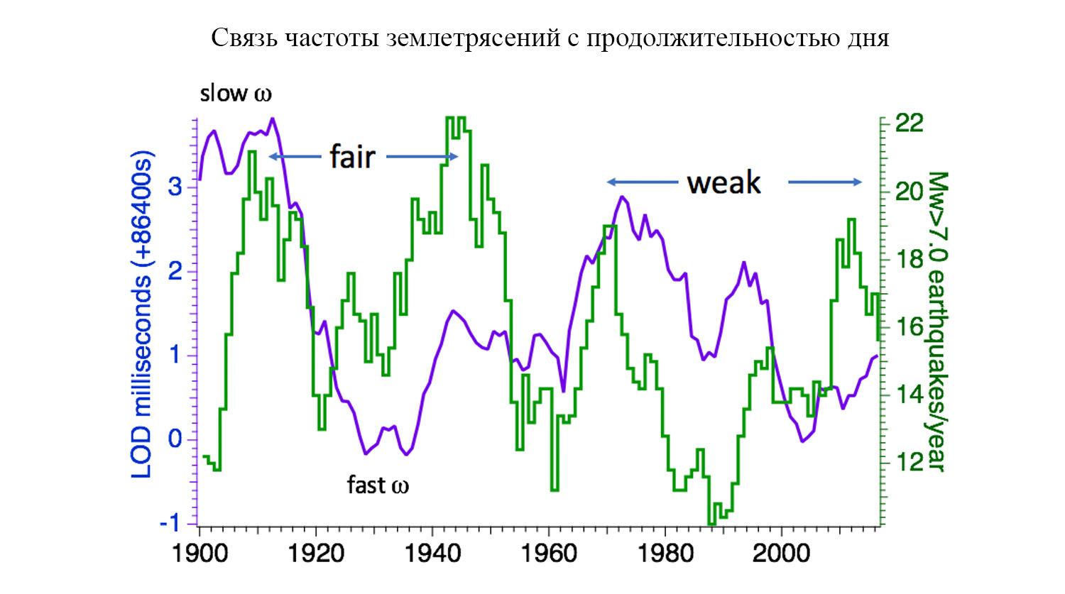 По его словам, зависимость между скоростью вращения Земли и частотой землетрясений хороша видна на столетенем графике: