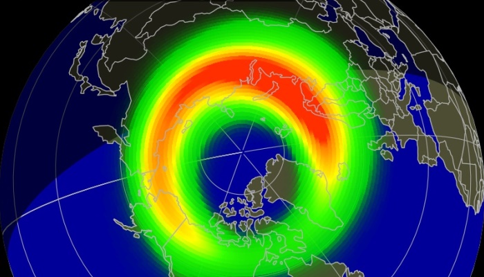 Исключительно высокие вероятности полярных сияний на широтах Москвы и Санкт-Петербурга показывают модели. Пик сияний может прийтись на 21-22 часов по московскому времени. В Санкт-Петербурге до 24 часов. Земля находится в облаке солнечной плазмы с середины вчерашнего дня. Уровень колебаний магнитного поля в последние 2 часа вырос до индекса Kp=8 по максимальной 9-балльной шкале. Судя по всему, по планете ударило центральное плотное ядро выброшенной плазмы – скорее всего остатки плотного солнечного протуберанца, не успевшие полностью рассеяться на пути к Земле.