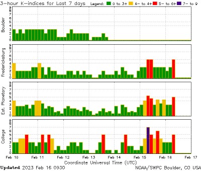 Магнитная буря началась - 15 февраля 2023. Индекс возмущений магнитосферы - K-5 - уровень G-1.