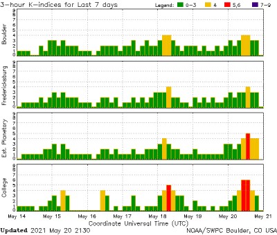 В результате активности, выбросов корональной массы Солнца - 20 мая 2021 - произошла магнитная буря.