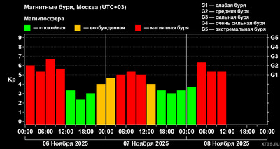Главная » 2025 » Ноябрь » 8 » Геомагнитная буря 8 ноября 2025.