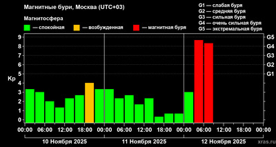 Главная » 2025 » Ноябрь » 12 » Геомагнитная буря высшего уровня 12 ноября 2025.