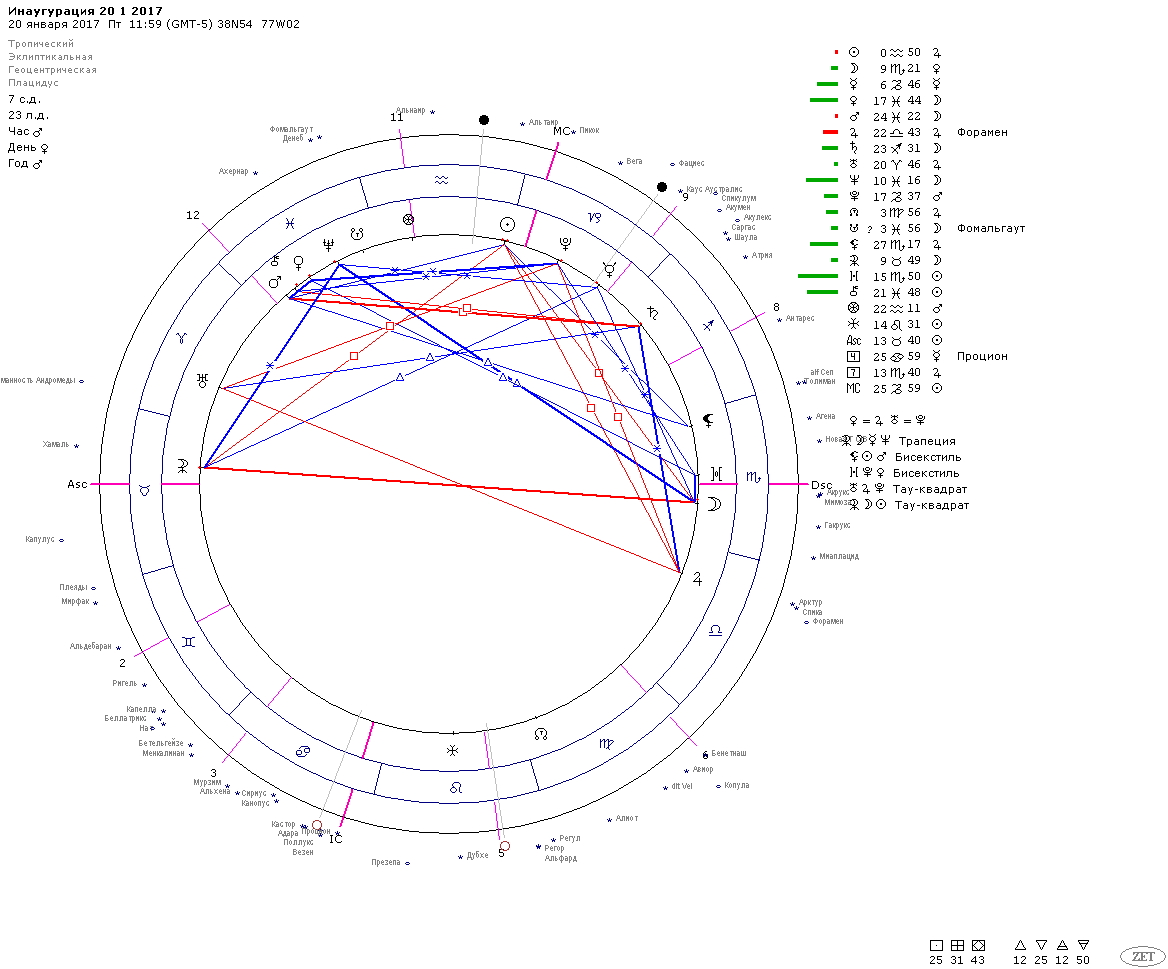 Гороскоп инаугурации Дональда Трампа - 20 января 2017 - 11:59 Вашингтон, округ Колумбия, США.