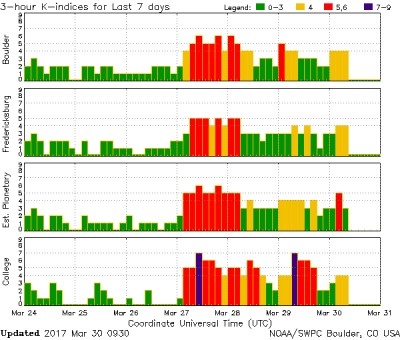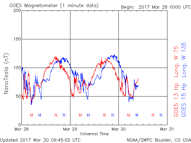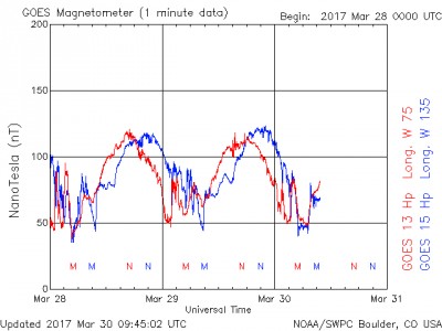 В магнитосфере Земли продолжаются аномалии - 30 марта 2017 - произошла очередная магнитная буря.