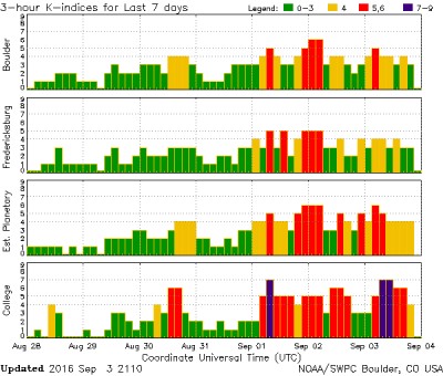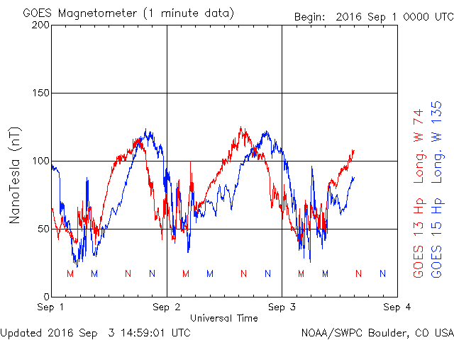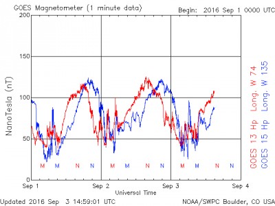 Под действием космических факторов, активности Солнца - 3 сентября 2016 - продолжается магнитная буря, которая началась 1 - 2 сентября.
