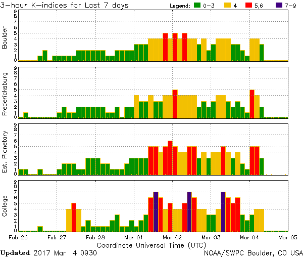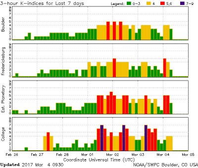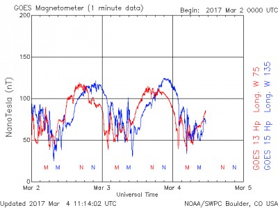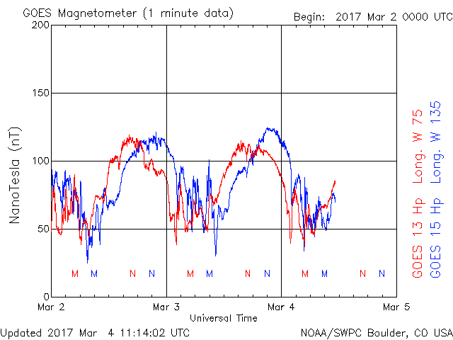 В магнитосфере Земли - 4 марта 2017 продолжается магнитная буря, которая началась 1 марта.