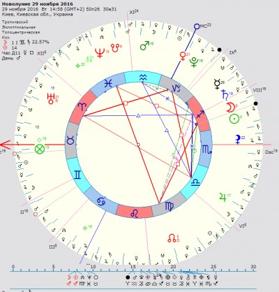 Новолуние выдается очень напряженное, конфликтующее с узлами, а значит социальные и общественные темы встают ребром, становятся камнем преткновения, и приходится неминуемо чем-то, и кем-то (особенно в государственных масштабах) пожертвовать.