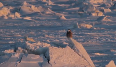 Полярная лиса и снежная сова замечены в странном танце. Видео.