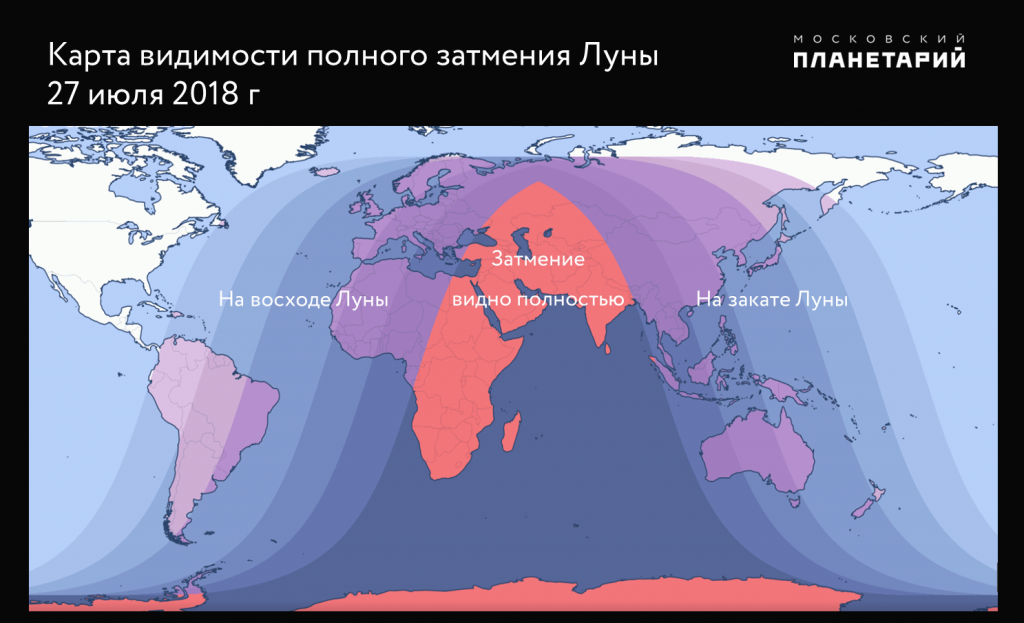 Некоторым россиянам повезло, потому что это лунное затмение особенно хорошо было видно в нашем регионе. Астрономы Московского планетария сообщают, что лучше всего наблюдать за явлением можно было на Северном Кавказе, Южном Урале и Прикаспийской низменности — там пиковая фаза затмения состоится в полночь по местному времени и Луна будет видна на удобной высоте. Однако, из-за туч многие так и не смогли полноценно насладиться зрелищем.