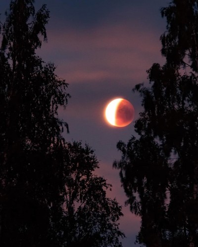 Лунное затмение продлилось 3 часа 56 минут, началось в 21:24 по московскому времени. Это явление можно перепутать с солнечным затмением, когда Луна частично или полностью перекрывает звезду от Земли. В лунном затмении все наоборот — Земля перекрывает свет Солнца и бросает тень на Луну.