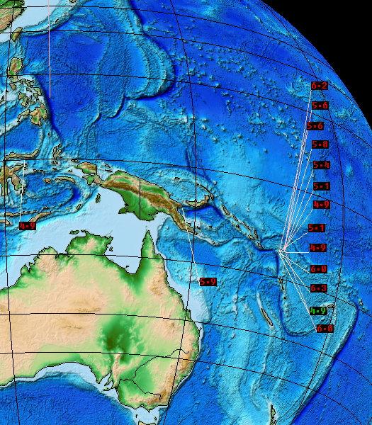| Magnitude | Mw 5.8 | | Region | SANTA CRUZ ISLANDS | | Date time | 2013-02-02 04:16:23.0 UTC | | Location | 10.96 S ; 165.21 E | | Depth | 60 km | | Distances | 2233 km NE Brisbane (pop 1,843,392 ; local time 14:16:23.9 2013-02-02) 1630 km NW Suva (pop 199,455 ; local time 16:16:23.9 2013-02-02) 548 km NW Luganville (pop 13,397 ; local time 15:16:23.9 2013-02-02) 73 km W Lata (pop 538 ; local time 15:16:23.9 2013-02-02) |