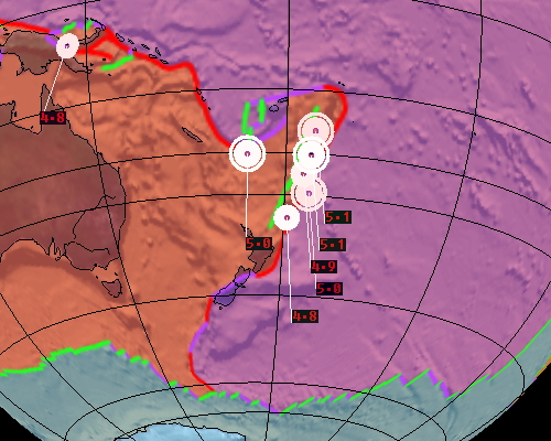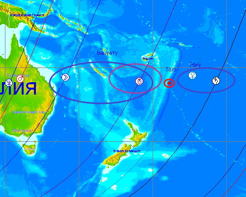 На регион островов Тонга, Кермадек, Новую Зеландию, в целом, жестко проецируется