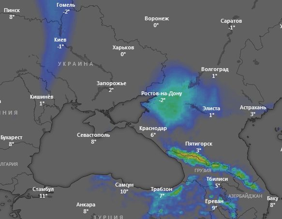 По прогнозу Росгидромета и Центра "Антистихия" МЧС РФ, в среду циклон продолжит оказывать влияние на территории Калмыкии, Краснодарского края и Ростовской области. Ожидаются осадки в виде мокрого снега, а также дождь и усиление ветра до 18 метров в секунду.