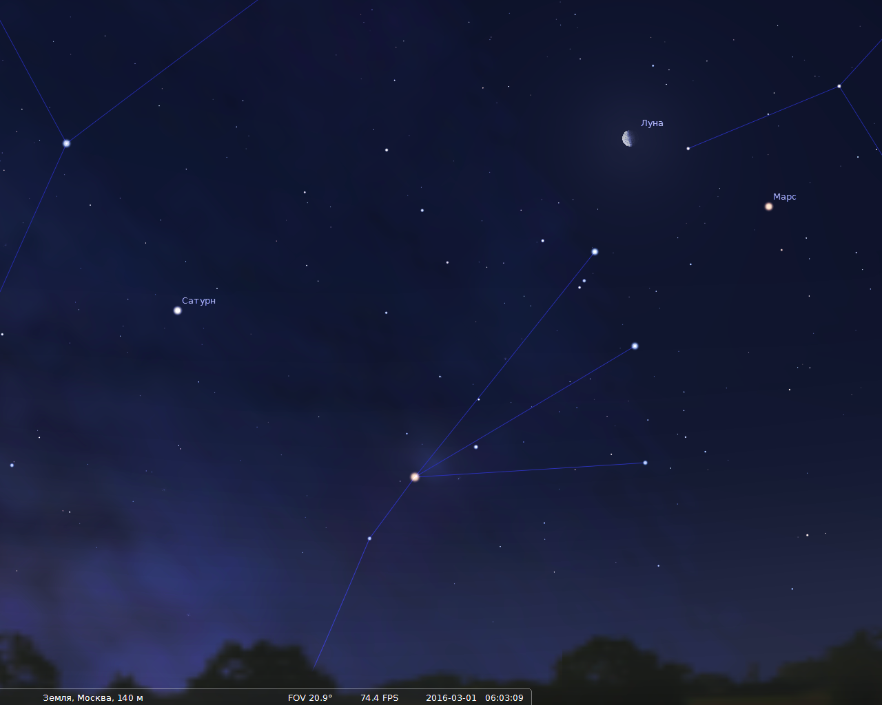 Марс, Сатурн, Антарес и Луна 1 марта 2016