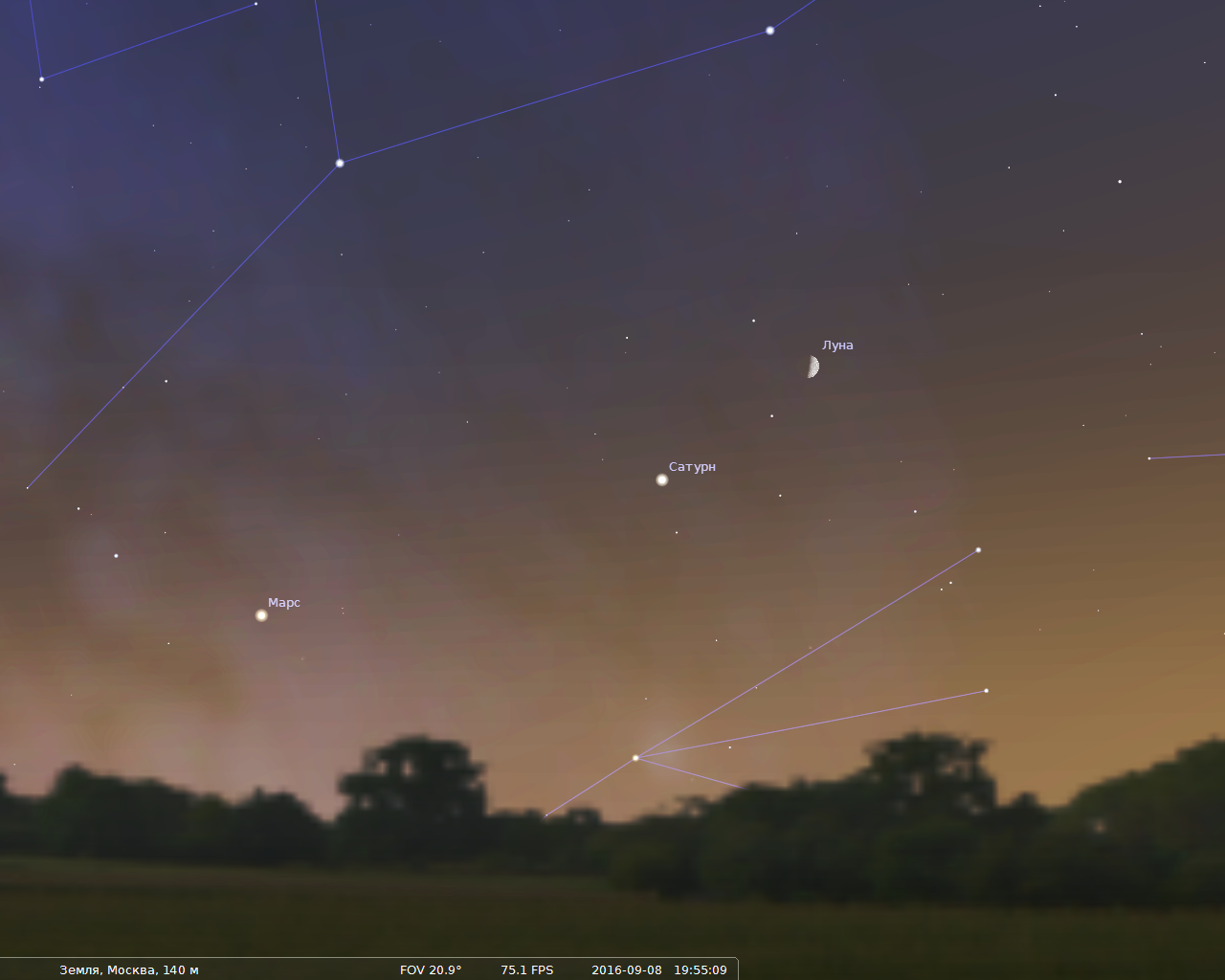 Марс, Сатурн, Антарес и Луна 8 сентября 2016