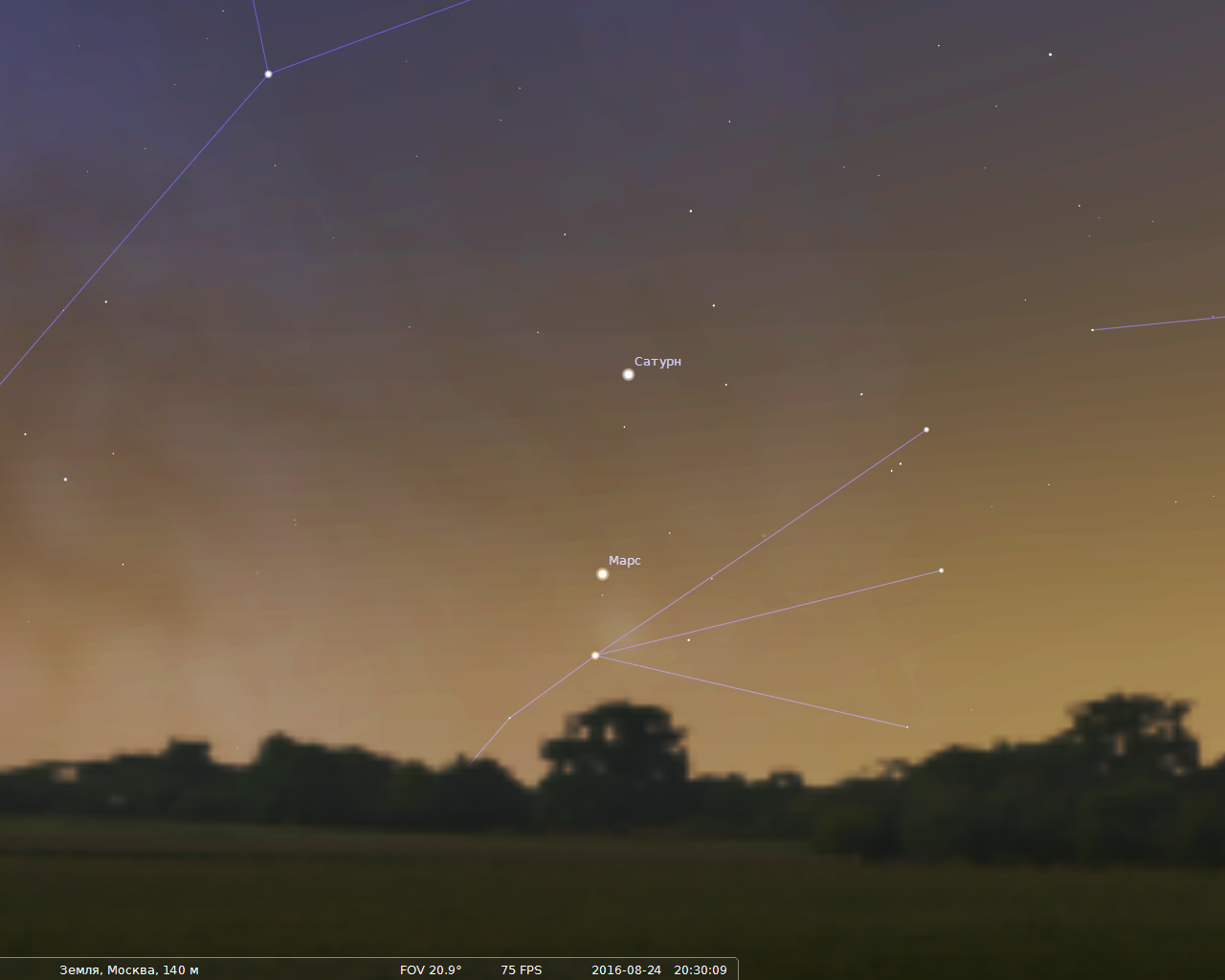 Марс, Сатурн, Антарес и Луна 12 августа 2016