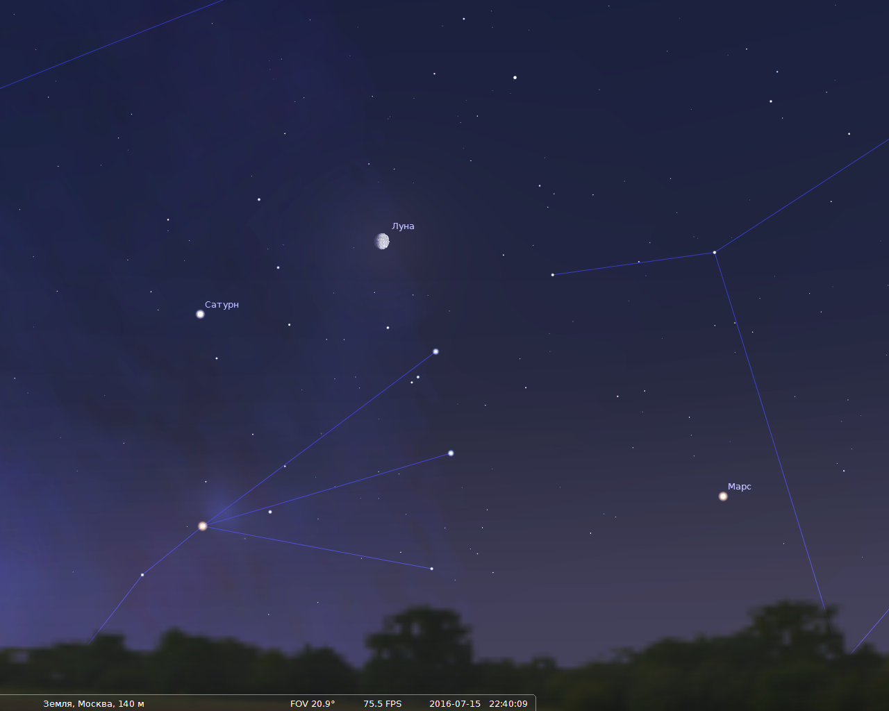 Марс, Сатурн, Антарес и Луна 15 июля 2016
