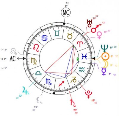 Однако не все планетные взаимосвязи гармоничные (См. астрологическую карту затмения ниже). Противостояние Юпитера в Весах и Урана в Овне увеличивает потребность в свободе, появляется желание взбунтоваться против всех правил и ограничений. В результате не исключены неожиданные события, которые приведут к существенным изменениям в личной жизни.