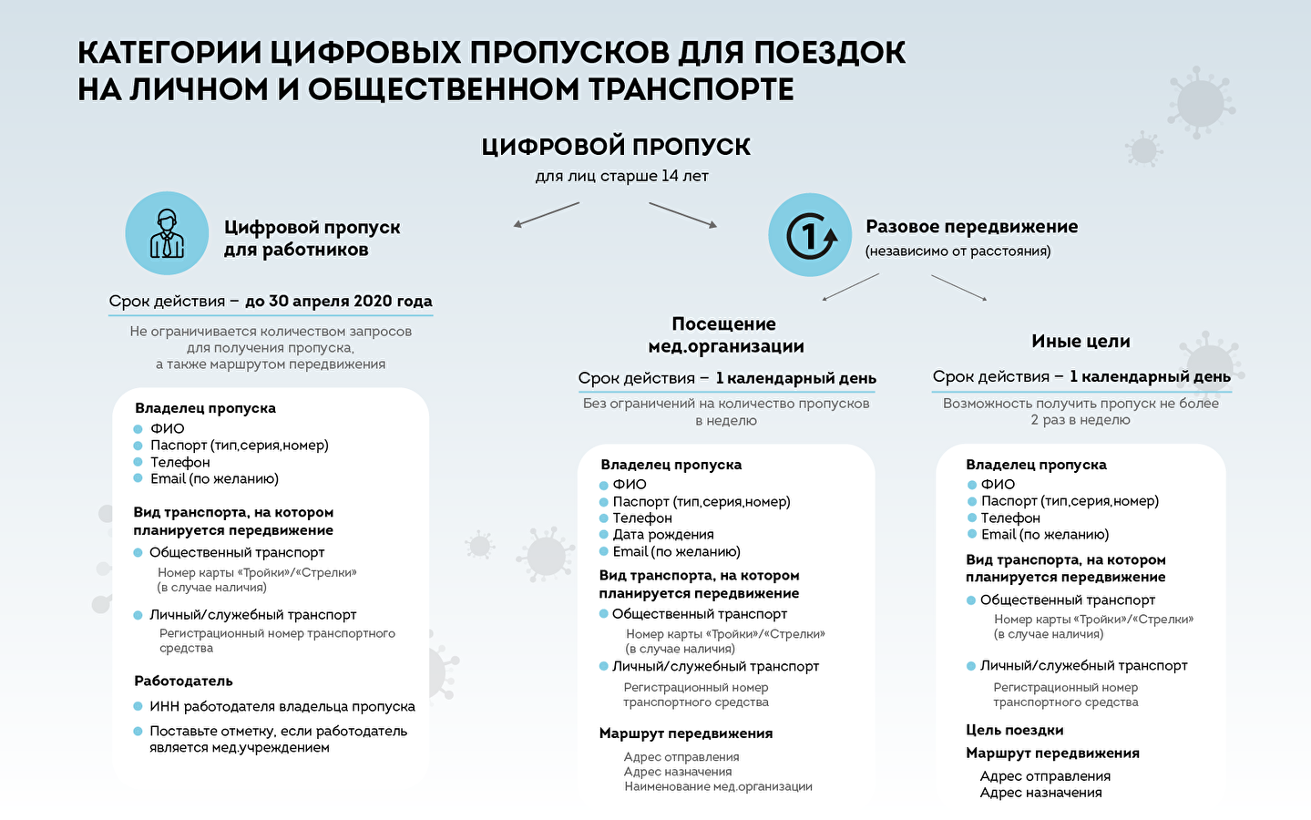 С 15 апреля 2020 для поездок по Москве и Московской области на личном и общественном транспорте потребуются специальные цифровые пропуска. Начать их оформление можно будет с понедельника, 13 апреля.