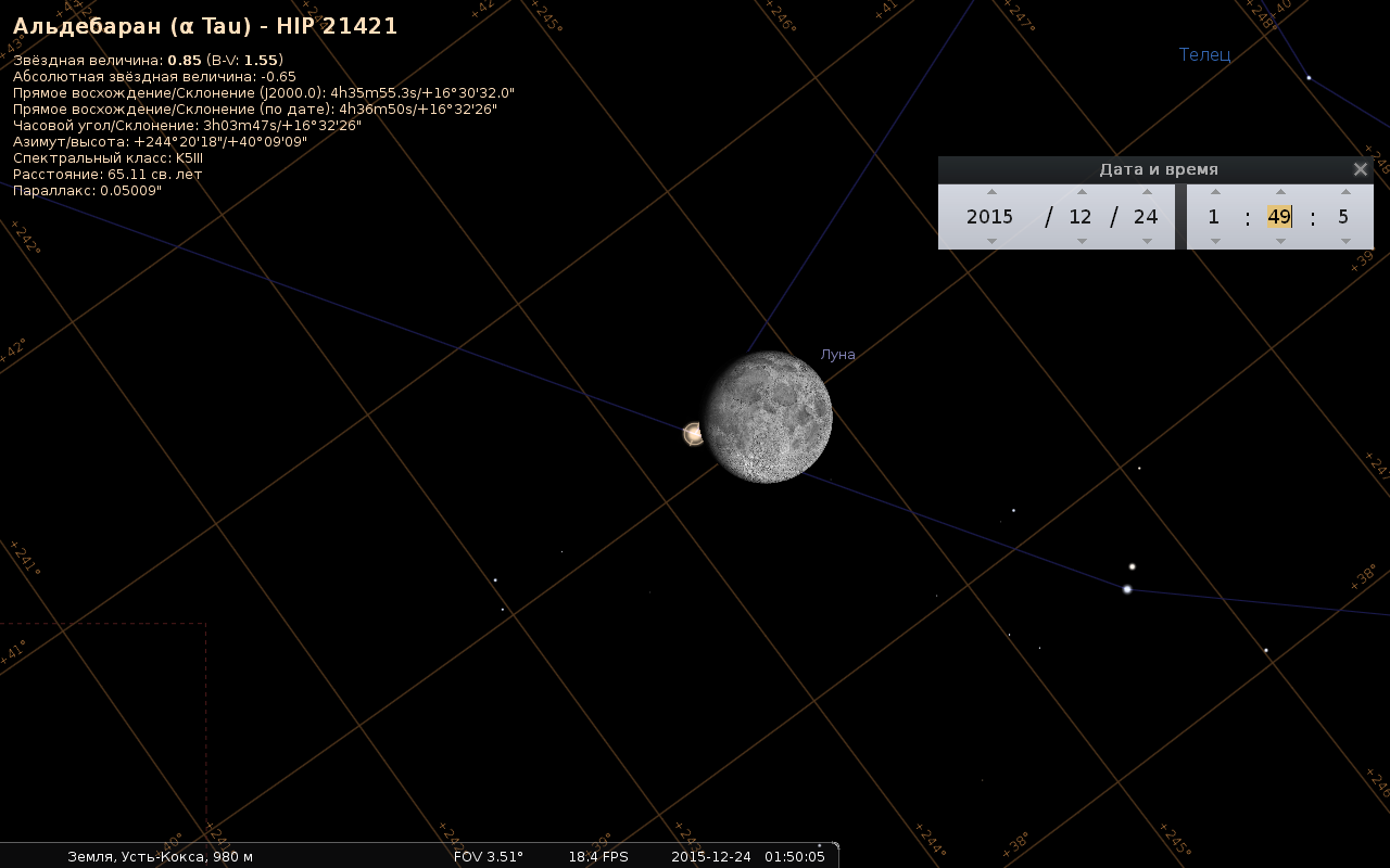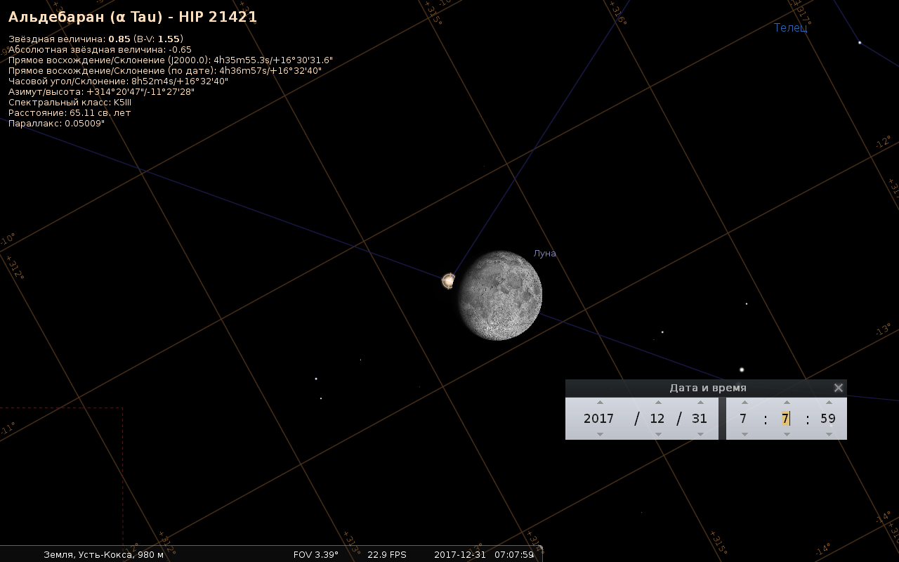 Двадцать второе затмение Альдебарана Луной 27 января 2018 года.