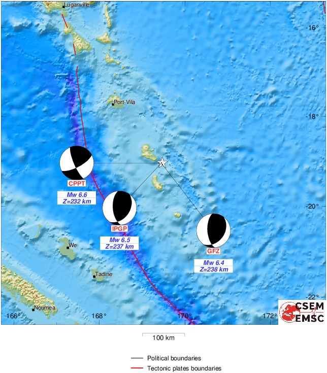 На Вануату - 21 октября 2019 - произошло землетрясение магнитудой 6.4 - на глубине около 232 - 238 км.