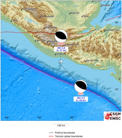 В Гватемале - 18 ноября 2021 - произошло землетрясение магнитудой 5.9 - на глубине около 18 - 31 км.