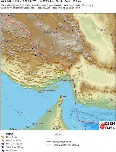 62 km NNW of Bandar Abbas, Iran / pop: 352,000 / local time: 15:38:39.0 2021-11-14 |