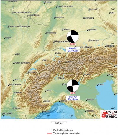В Швейцарии, в кантоне Гларус - 6 марта 2017 - произошло землетрясение магнитудой 4.2 - 4.6 на глубине около 5 - 10 км.