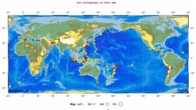 Происходят землетрясение магнитудой от 4.0 до 5.5. Прогноз.