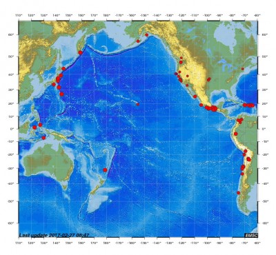 Вибрация Новолуния, Солнечного затмения - 26 февраля 2017 - вызвала сейсмическую активность в Огненном кольце Тихого океана.