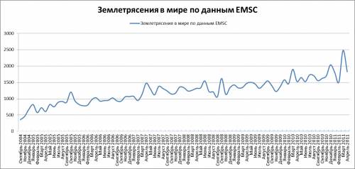 Землетрясения в мире по данным EMSC. Данные по апрель 2011 года.